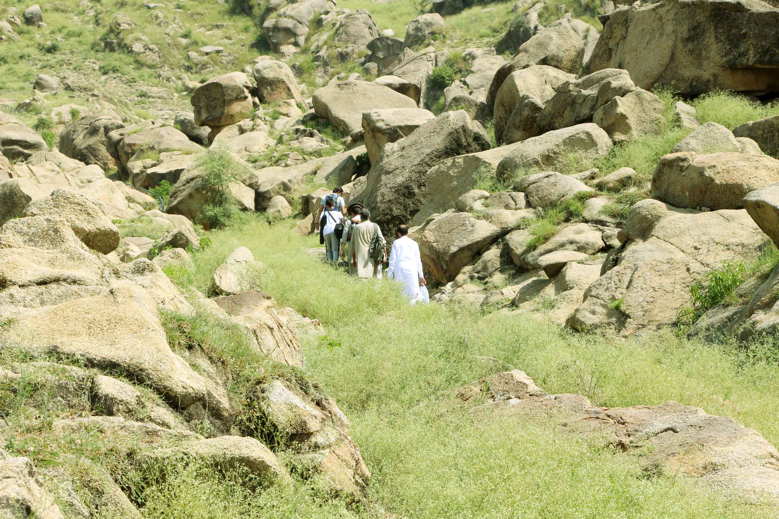 اس حوالے سے حیدر علی اخوند خیل کے ایک تحقیقی مقالے کا پیراگراف ملاحظہ ہو، “اس پہاڑ کے جنوب مشرق میں پتھر کا ایک گھر ہے، جس میں دو کمرے ہیں۔ اس (بادشاہ کے گھر) کے سامنے دس قدم کے فاصلے پر ایک چوکور پتھر ہے، جس پر ’بادشاہ‘ بیٹھا کرتا تھا۔ بادشاہ اشوک نے اس جگہ کے احترام میں یہاں ایک اسٹوپا بنوایا۔ اسٹوپا کے جنوب میں ایک لی (لی، میل کے پانچویں حصے کے برابر ہوتا ہے ) کے فاصلے پر بادشاہ کا مکان ہے۔ پہاڑ سے اُترتے ہوئے شمال کی طرف 50 قدم کے فاصلے پر وہ جگہ آتی ہے جہاں شہزادہ اور شہزادی نے ایک دوسرے سے الگ ہوئے بغیر درخت کے گرد چکر لگائے اور جہاں برہمنوں نے انہیں اتنا مارا کہ ان کا خون زمین پر ٹپکنے لگا۔ درخت اب بھی موجود ہے اور اسے دیے گئے خون کے قطرے بھی محفوظ ہیں۔ وہاں پانی کا ایک چشمہ ہے ۔”