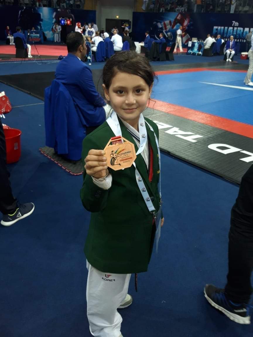 سوات(سوات نیوزڈاٹ کام)سوات کی آٹھ سالہ عائشہ آیاز نے یو اے ای میں تھائی کوانڈون کے تین مقابلوں میں کانسی کا تمغہ جیت کر ملک کا نام دنیا بھر میں روشن کردیا۔عائشہ کو ملک بھر میں کم عمر کھلاڑی کا اعزاز بھی حاصل ہو گیا ۔عائشہ سوات کی رہائشی ہے اور اس وقت دبی میں موجود ہے جبکہ کچھ دنوں میں ملک واپس آئی گی