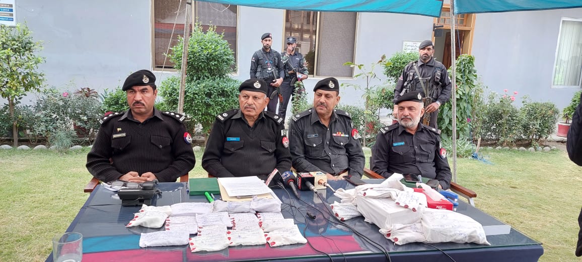 سوات پولیس کی بڑی کاروائی، سیاحوں کو کوٹنے والے بین ا لصوبائی ڈکیت گروپ کا سرغنہ ساتھی سمیت گرفتار، لوٹی ہوئی رقم اسلحہ اور واردات میں استعمال ہونی والی گاڑیاں برآمد، ملزمان کو میڈیا کے سامنے پیش کردیا اس سلسلے میں ایس پی شاہ حسن خان، ایس پی اپر سوات درویش خان، ایس پی انوسٹی گیشن نذیر خان اور دیگر نے پریس کانفرنس سے خطاب کرتے ہویے کہا کہ جیسا کہ آ پ کو معلوم ہے کہ مورخہ 09-8-2021 تھانہ مدین اور تھانہ غالیگے کے حدود میں دو نا خوشگوار واقعے رونما ہوئے تھے جس میں مدین کے علاقے قندیل میں نامعلوم ملزمان نے اسلحہ کے نوک پر ٹورسٹ کوسٹرکو لوٹ لیاتھا۔ جن سے مجموعی طور پر 4لاکھ روپے، 11عدد موبائیل فون ودیگر قیمی زیورات لے گئے تھے۔